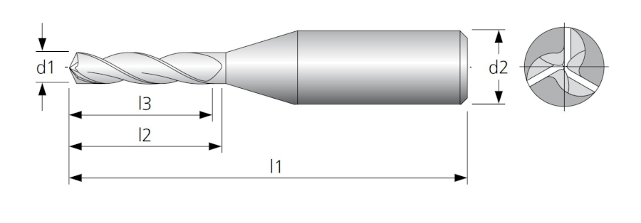 Monolitní tvrdokovový vrták o průměru 0,7 mm se zesílenou stopkou 3,175 mm (1,8"). Celková délka nástroje je 38,0 mm, z toho pracovní 10,5 mm. Šroubovice má délku 9,5 mm.