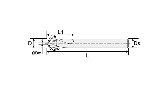 1,7 mm VHM karbidový monolitní vrták pro srážení s ∢ zkosení 60° (∢ špičky 120°) a 45° (∢ špičky 90°) s povlakem UNICO. Celková délka vrtáku je 50,0 mm, z toho pracovní část 5,0 mm.