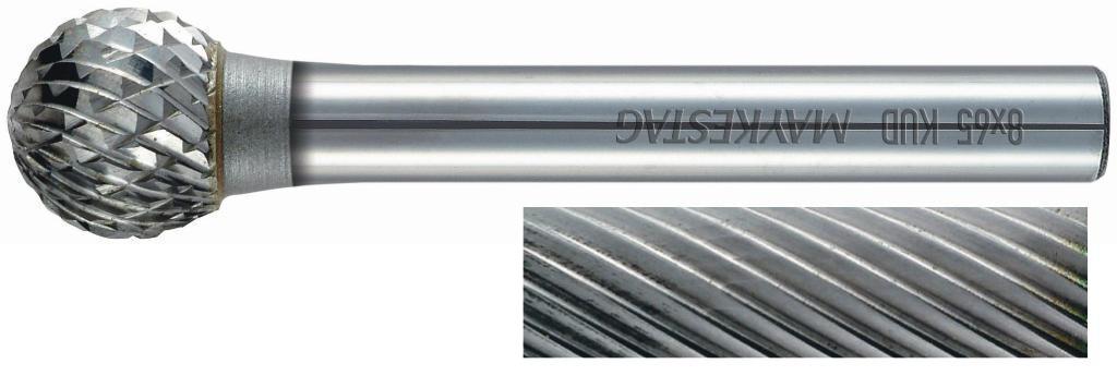 Karbidová kulová technická fréza typu KUD s řezným profilem dle DIN MY, 6 mm válcovou stopkou, průměrem pracovní části 16 mm, délkou pracovní části 14 mm a celkovou délkou 59 mm. Fréza je určena pro odjehlování, srážení a vyhlazování hran. Je vhod