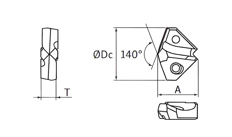Vyměnitelná břitová korunka tvaru V, 140°, užívá povlak AQEX, díky čemuž je vysoce odolná proti vylamování. Lze ji použít do vrtákových držáků AQDEXVF1.5D18, AQDEXVF3D18, AQDEXVF5D18, AQDEXVF8D18.