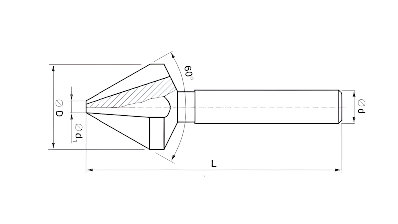 HSS kuželový záhlubník o Ø 20,0 mm s ∢ 60° a válcovou stopkou určený k srážení hran a zahlubování otvorů pro šrouby se zápustnou hlavou.