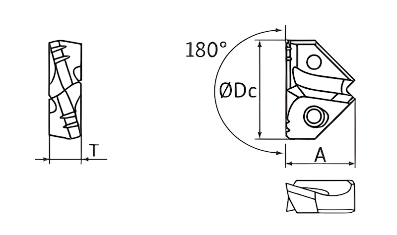 Vyměnitelná břitová korunka ∢ 180°, užívá povlak AQEX, díky čemuž je vysoce odolná proti vylamování. Lze ji použít do vrtákového držáku AQDEXVF1.5D22.