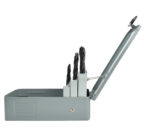 25ti dílná sada HSS vrtáků do kovu o průměrech 1,0 - 13,0 mm po 0,5 mm v kovové kazetě. Vrtáky jsou určeny k vrtání nelegované oceli, neželezných kovů a plastů.