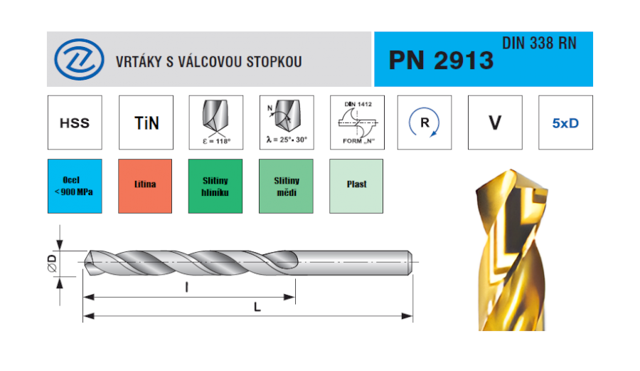 3,00 mm vrták do kovu HSS TiN vybrušovaný lesklý, vyrobený v České republice podle normy PN2913. Celková délka vrtáku je 61,0 mm, z toho pracovní délka 33,0 mm.