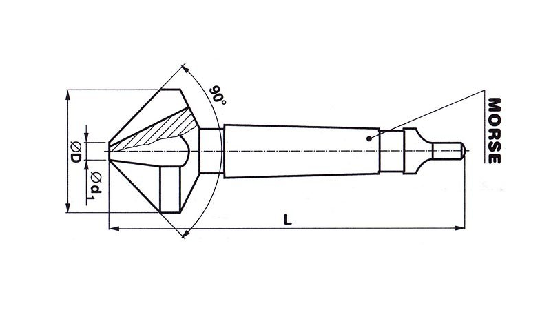 34,0 mm kuželový HSS záhlubník 90° tříbřitý s kuželovou stopkou. Délka nástroje je 118,0 mm.
