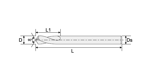 5,0 x 75,0 mm 90° NC navrtávák VHM UNICO