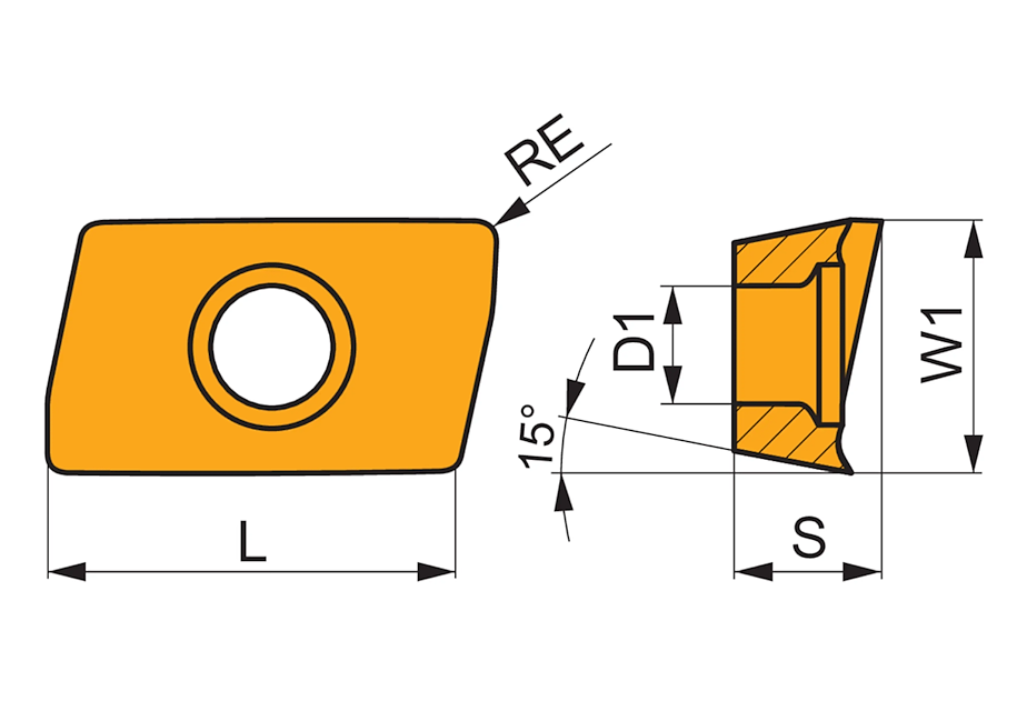 Jednostranné frézovací destičky ADEX 1606 HF7 jsou obdélníkové a umožňují maximální hloubku řezu 13,0 mm. Mají rádius rohu 0,4 mm a jejich přesnost zaměnitelnosti odpovídá tolerancím ISO-E. Speciální FA geometrie s ostrou řeznou hranou zajišťuje hladký a přesný řez a kvalitní povrch obrobku.