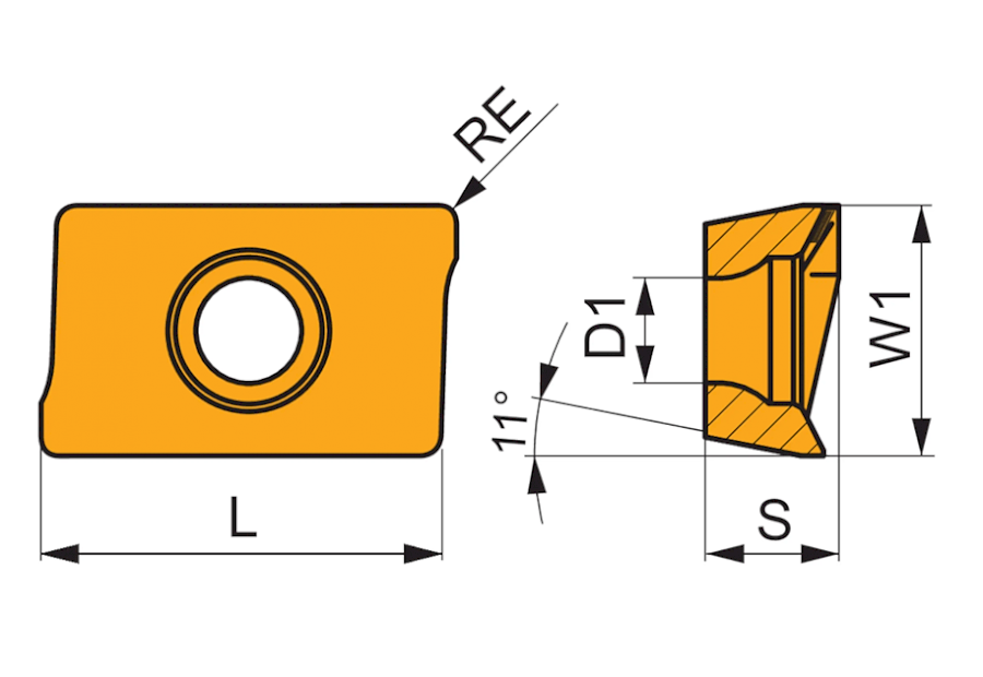 Jednostranné frézovací destičky APKX 1505, obdélníkové pro maximální hloubku řezu 13,0 mm, s 0,8 mm rádiusem rohu, přesností zaměnitelnosti destiček dle tolerancí ISO-K. R geometrie se zaoblenou řeznou hranou a fazetkou zajišťuje stabilní řez, rovnoměrné opotřebení a efektivní lámání třísky při obrábění ocelí.