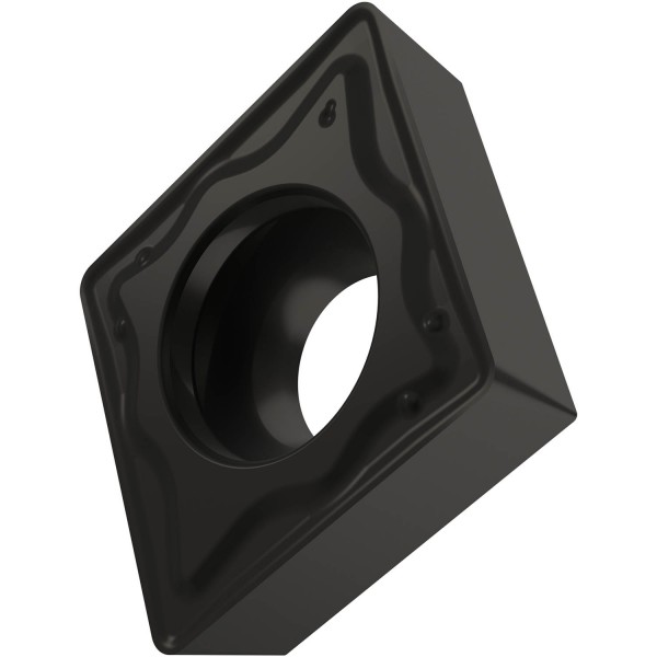 Vyměnitelná břitová destička CCMT 09T308E-RM ;T5305 je soustružnická. Primární užití pro materiály: litiny. Možné užití pro materiály: oceli. Podmíněné užití pro materiály: kalené oceli. Destička je kosočtvercového tvaru, jednostraná s utvařečem třísky s otvorem a s osazením pro hlavu šroubu pod úhlem 40°-60°. Destička je pozitivní s úhlem 7°. Rádius špičky destičky je 0,8 [mm]. Velikost destičky neboli délka řezné hrany je 9,525 [mm]. Destička má tloušťku 3,97 [mm]. Dále úhel žlábku je 19°. Můžete použít posuv v rozsahu 0,1-0,5 [mm/ot]. Maximální rozsah hloubky řezu je 0,8-4,5 [mm]. Utvařeč třísky umožňuje obrábět za těchto podmínek: Vyšší řezná rychlost, mírně snížená tuhost soustavy (kolísavá hloubka řezu). Materiál destičky vám umožňuje použít: velmi dobré podmínky obrábění, při excelentní tuhosti soustavy (stabilní záběrové podmínky). Materiál destičky je slinutý karbid. Povlak destičky pro litiny (CVD). Provedení řezné hrany: zaoblené hrany. Destička má toleranci hlavního rozměru 0,08 ÷ 0,18 [mm], toleranci tloušťky 0,13 [mm] a toleranci vepsané kružnice 0,05 ÷ 0,13 [mm].