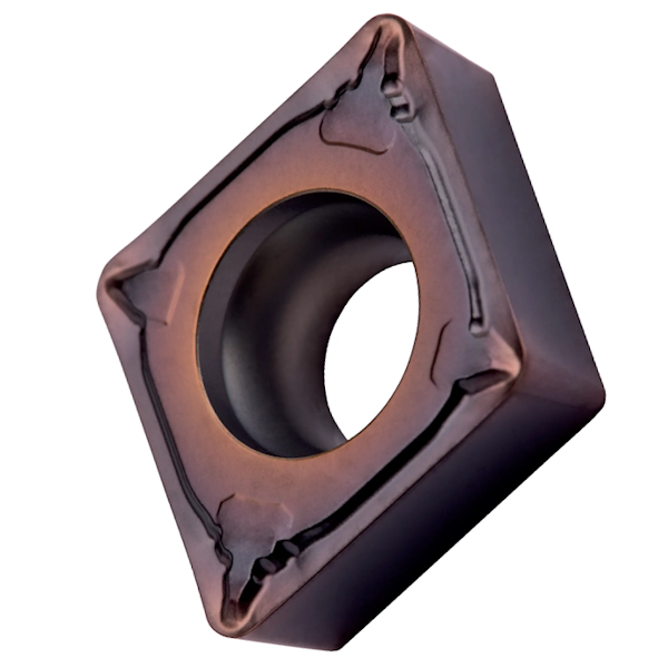 Jednostranné pozitivní soustružnické destičky CCMT 120408E-UR:T8430 jsou navrženy pro jemné až těžké obrábění oceli, kde je vyžadována vysoká stabilita a spolehlivost řezného procesu. Geometrie 80° kosočtverce s 7° úhlem hřbetu a rádiusem špičky 0,8 mm poskytuje rovnoměrné rozložení řezného zatížení, což zajišťuje přesný a hladký řez a minimalizuje vibrace i při náročných podmínkách obrábění.