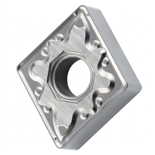 Břitové destičky CNMG 120408 STK FM30S jsou negativní oboustranné destičky určené pro obrábění korozivzdorných ocelí při středních až polodokončovacích operacích. Geometrie dle ISO zahrnuje kosočtvercový tvar s vrcholovým úhlem 80° a úhlem hřbetu 0°, který zajišťuje vysokou stabilitu a pevnost břitu. Konstrukce s otvorem a utvařečem na obou stranách poskytuje čtyři řezné hrany a umožňuje efektivní využití destiček v sériové výrobě. Rozměrově jsou charakterizovány délkou řezné hrany 12,9 mm, tloušťkou destičky 4,76 mm a rádiusem špičky 0,8 mm, jenž představuje univerzální kompromis mezi pevností ostří a kvalitou obrobeného povrchu.