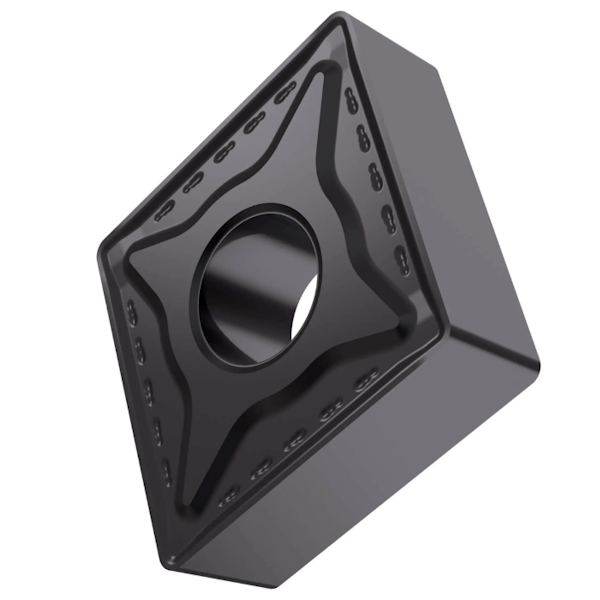 Použitý utvařeč třísky RM se zaoblenou řeznou hranou je optimalizován pro střední až těžké obrábění. Geometrie podporuje efektivní lámání třísky a její kontrolovaný odvod z místa řezu i při vyšším zatížení, čímž přispívá ke stabilnímu průběhu obrábění a omezení vibrací. Negativní oboustranné provedení umožňuje využití více řezných hran, což zvyšuje hospodárnost provozu a přispívá k delší efektivní životnosti destiček při dlouhodobém nasazení.