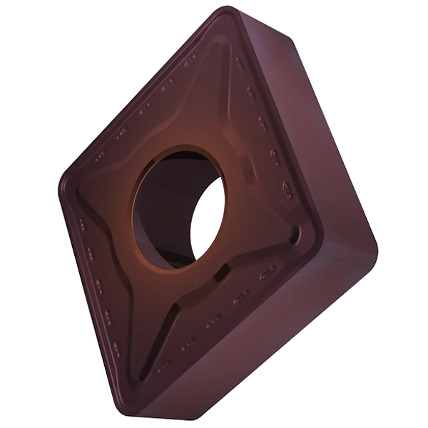 Oboustranné negativní soustružnické destičky CNMG 190616E-RM:T8430 jsou provedeny ve tvaru 80° kosočtverce s průměrem vepsané kružnice 19,05 mm, výškou 6,35 mm a rádiusem špičky 1,6 mm. Negativní geometrie poskytuje vysokou pevnost řezné hrany a umožňuje využití více břitů, což přispívá k hospodárnému provozu při náročnějších soustružnických operacích. Přesnost dle tolerance třídy ISO M zajišťuje spolehlivou zaměnitelnost destiček a stabilní upnutí v držáku.
