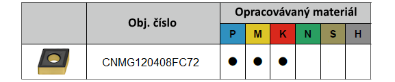 Oboustranné negativní břitové destičky CNMG120408 FP CC7025 s utvařečem FC a rádiusem 0,8 mm ze slinutého karbidu s CVD povlakem jsou určeny pro dokončovací obrábění ocelí, nerezi i litiny.