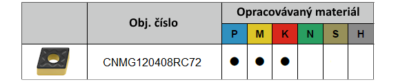 Oboustranné negativní břitové destičky CNMG 120408 RK CC7025 s utvařečem RK a rádiusem 0,8 mm ze slinutého karbidu s CVD povlakem jsou určeny pro obrábění ocelí, nerezi i litiny.