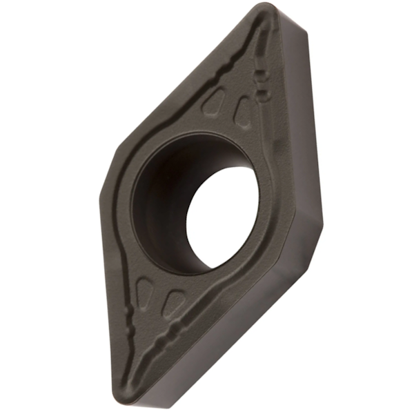 Soustružnické destičky DCMT 11T302E-UR:T7325 jsou navrženy pro univerzální použití při obrábění ocelí a nerezových ocelí v širokém rozsahu řezných podmínek. Jedná se o jednostranné pozitivní destičky s geometrií 55° kosodélníku a úhlem hřbetu 7°, které zajišťují plynulý řez a snižují zatížení nástroje. Konstrukce destiček zahrnuje průměr vepsané kružnice 9,525 mm, výšku 3,97 mm a rádius špičky 0,2 mm, což umožňuje přesné dokončovací operace i stabilní práci při vyšším zatížení.