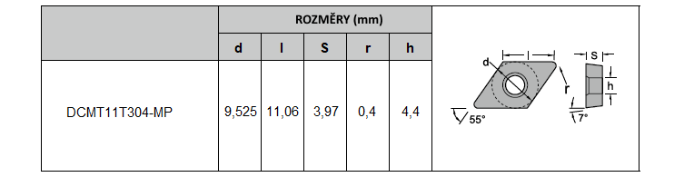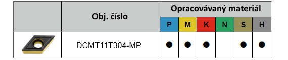 Soustružnické destičky DCMT11T304-MP CP6025 s utvařečem MC a rádiusem 0,4 mm ze slinutého karbidu jsou vhodné pro střední soustružení ocelí, nerezových ocelí, litin, superslitin i kalených materiálů.
