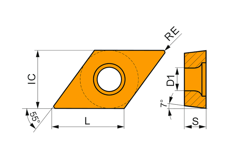 Soustružnické destičky DCMT 11T308E-FM:T8315 jsou navrženy pro přesné a stabilní obrábění nerezové oceli při dokončovacích i středně náročných soustružnických operacích. Jedná se o jednostranné pozitivní destičky s geometrií 55° kosodélníku a úhlem hřbetu 7°, které umožňují plynulý průběh řezu a snižují zatížení nástroje i obrobku. Konstrukce destičky je definována průměrem vepsané kružnice 9,525 mm a výškou 3,97 mm, což zajišťuje stabilní usazení v nástrojovém držáku a přesné vedení nástroje během obrábění.