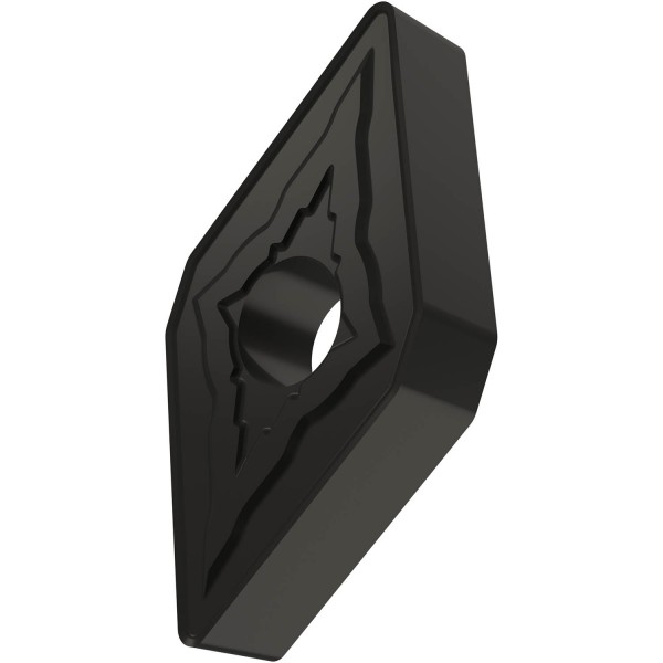 Vyměnitelná břitová destička DNMG 150608E-NMR ;T7335 je soustružnická. Primární užití pro materiály: nerezové oceli. Možné užití pro materiály: oceli, super slitiny na bázi titanu, železa, niklu. Destička je kosočtvercového tvaru, oboustranná s utvařečem třísky s otvorem. Destička je negativní. Rádius špičky destičky je 0,8 [mm]. Velikost destičky neboli délka řezné hrany je 12,7 [mm]. Destička má tloušťku 6,35 [mm]. Destička má 1. fazetku s šířkou 0,31 [mm] a úhlem 10°. Dále úhel žlábku je 22°. Můžete použít posuv v rozsahu 0,18-0,7 [mm/ot]. Maximální rozsah hloubky řezu je 0,4-8,0 [mm]. Utvařeč třísky umožňuje obrábět za těchto podmínek: Vysoká řezná rychlost, dobrá tuhost soustavy (stabilní záběrové podmínky). Materiál destičky vám umožňuje použít: velmi těžké obráběcí podmínky, při snížené tuhosti soustavy (přerušovaný řez). Materiál destičky je slinutý karbid. Povlak destičky pro materiály skupiny nerezové oceli a super slitiny na bázi titanu, železa, niklu (CVD). Provedení řezné hrany: zaoblené hrany. Destička má toleranci hlavního rozměru 0,08 ÷ 0,18 [mm], toleranci tloušťky 0,13 [mm] a toleranci vepsané kružnice 0,05 ÷ 0,13 [mm].