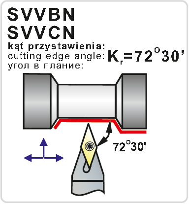 Soustružnický držák pro vnější soustružení. Výška držáku je 12 mm, šířka 12 mm. Hlava držáku má tvar V a úhel nastavení 72°30´. Destičky se do držáku upínají způsobem S, tedy šroubem v kuželovém otvoru. Do držáku se upínají destičky kosočtvercového t