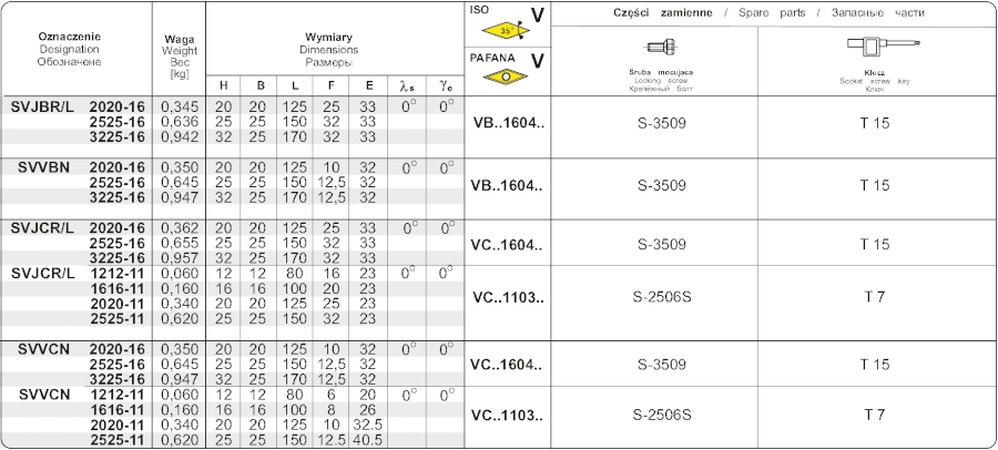 Soustružnický držák pro vnější soustružení. Výška držáku je 20 mm, šířka 20 mm. Hlava držáku má tvar V a úhel nastavení 72°30´. Destičky se do držáku upínají způsobem S, tedy šroubem v kuželovém otvoru. Do držáku se upínají destičky kosočtvercového t