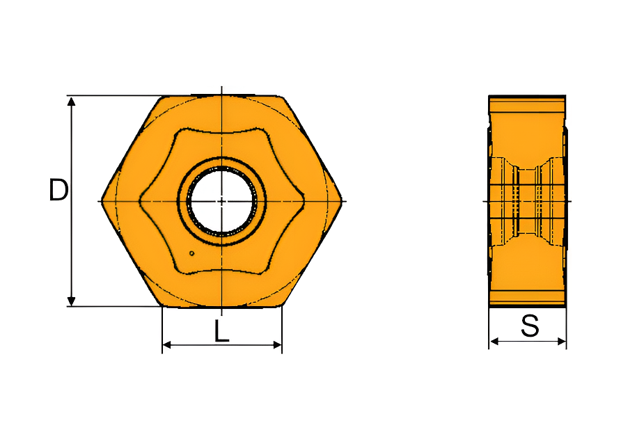 Oboustranné frézovací destičky HNKU 0806AZER-S6M jsou šestihranné břitové destičky určené pro rovinné frézy s maximální hloubkou řezu 5,0 mm. Destičky mají vysokou přesnost zaměnitelnosti dle ISO-G, což zaručuje stabilní a opakovatelné výsledky i při vyšších rychlostech a zatíženích.