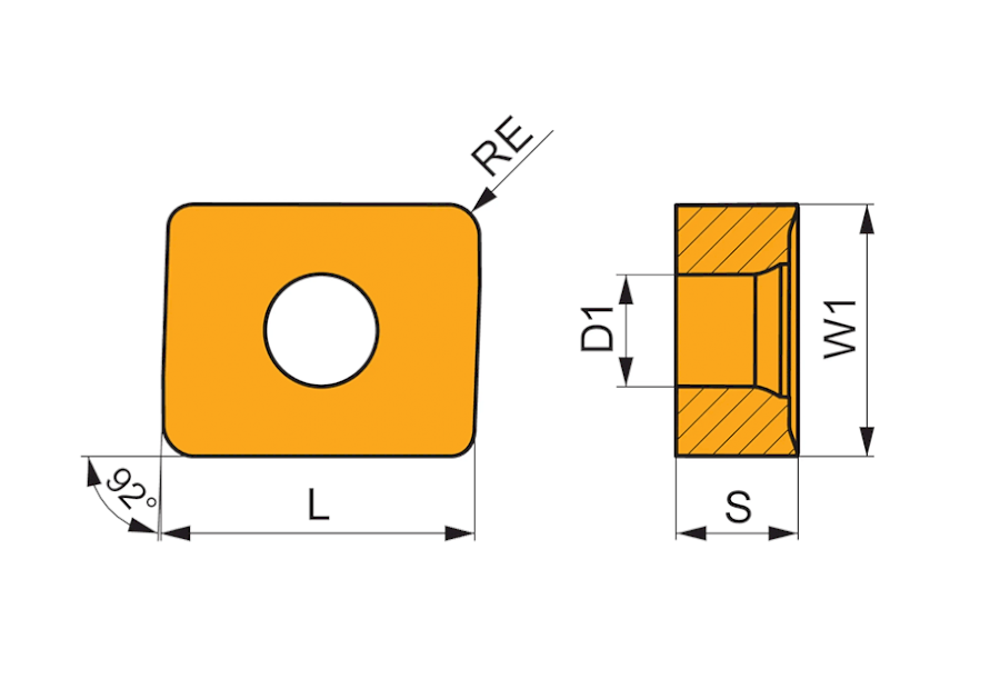 Jednostranné frézovací destičky LNET 1606 jsou obdélníkové destičky určené pro maximální hloubku řezu 15,0 mm s rádiusem rohu 1,6 mm a vysokou přesností zaměnitelnosti dle tolerancí ISO-E. R geometrie se zaoblenou řeznou hranou a fazetkou zajišťuje plynulý řez, efektivní odvod třísek a stabilní výkon při náročném obrábění.