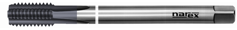 Strojní závitník M12x1,5 s přímou drážkou a lamačem třísek, s lícováním ISO2 (6HX), s klasickou stopkou podle normy DIN374, je vyrobený z HSSE oceli s povlakem TiCN s vysokou odolností vůči otěru a nízkým koeficientem tření. Tvar řezného kužele je ty