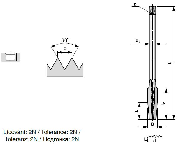 Maticový závitník M20x1,5 s lícováním 2N je vyrobený z nástrojové oceli dle normy ČSN 223074. Závitník má náběh v délce 12 závitů. Pro předvrtání použijte vrták průměru 18,50 mm.