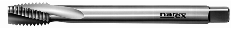 Strojní závitník M4 se šroubovitou drážkou s úhlem 15°, lícováním ISO2 (6H), s klasickou stopkou, je vyrobený z HSSE oceli, podle normy DIN376. Tvar řezného kužele je typu C a délka řezného kužele 2-3 závity. Použití: pro neprůchozí závity do automa