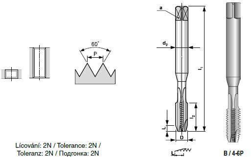 Strojní závitník s přímou drážkou a lamačem . Rozměr je M8. Závitník je vyroben z HSSE oceli, podle normy DIN371, v toleranci ISO2. Závitník můžete použít, na průchozí závit, do hloubky 1,5xD (1,5 násobek průměru).