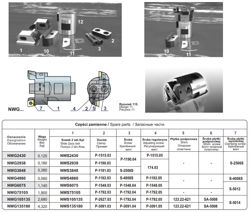 Náhradní nůž - držák destičky NWS 75105. Jedná se náhradní díl - část hlavice NWG 75105.Hlavice je součástí univerzálního modulového vrtacího systému. Součástí systému jsou stopky, vyvrtávací hlavy, nože, držáky nožů nebo vyvrtávacích hlav, prodlužovací díly a další doplňující součástky. Jednotlivé součásti systému je možné různě kombinovat, pomocí stejného držáku je možné uchytit hrubovací i dokončovací hlavice v celé škále průměrů, je možné měnit délku systému podle aktuální potřeby. Systém vykazuje vysokou tuhost, což je důležité pro přesné obrábění. Délku systému je možné zvýšit použitím i více než jednoho prodlužovacího dílu. Do systému se upínají vyměnitelné destičky podle ISO standardů.