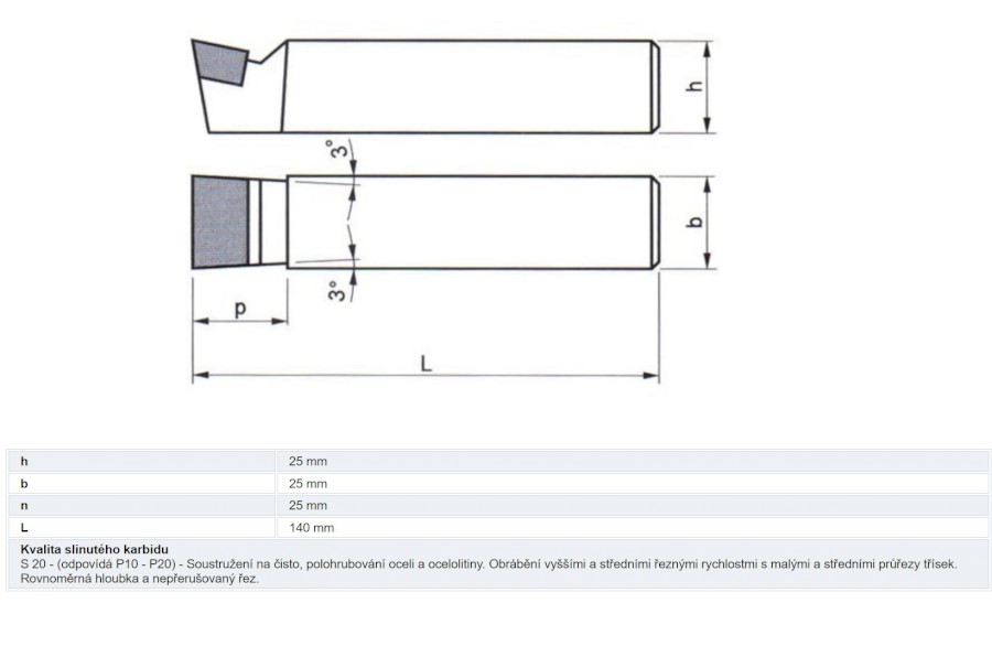 25x25 ČSN3718 S20 soustružnický nůž ubírací nabírací