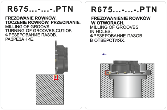 Nástrčná fréza kotoučová R675.62-125-3 pravotočivá s průměrem pracovní části 125 mm. Drážkovací fréza. Do frézy se upínají destičky typu PTN, způsob upínání destiček F. Typ uchycení frézy A - v těle frézy je drážka pro unášecí kameny hřídele.