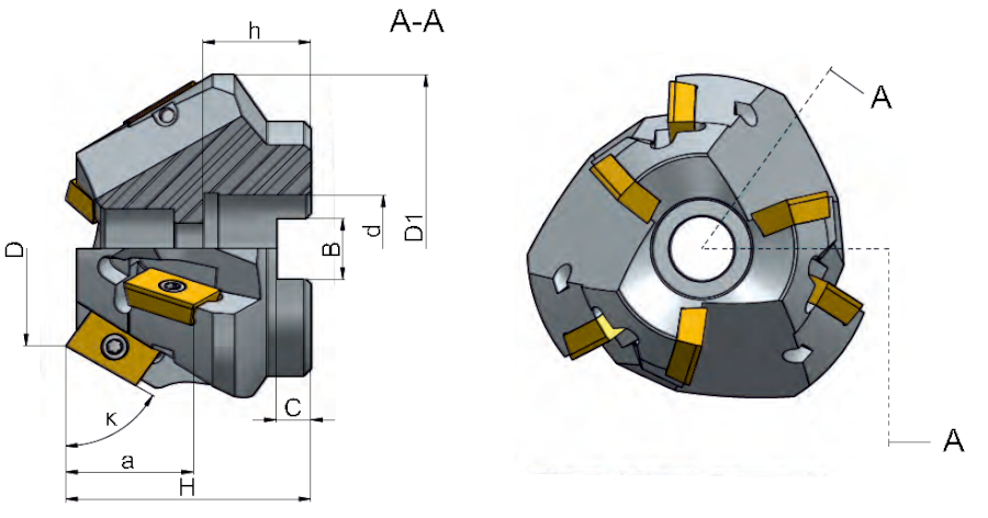 Nástrčná fréza pro srážení hran R650.21-040AP1640 pravotočivá s průměrem pracovní části 40 mm. Čelní fréza s úhlem k=40° (Y podle normy). Do frézy se upínají destičky typu A - rovnoběžníkového tvaru s úhlem 85°rovnoběžníkového tvaru s úhlem 85°, způs