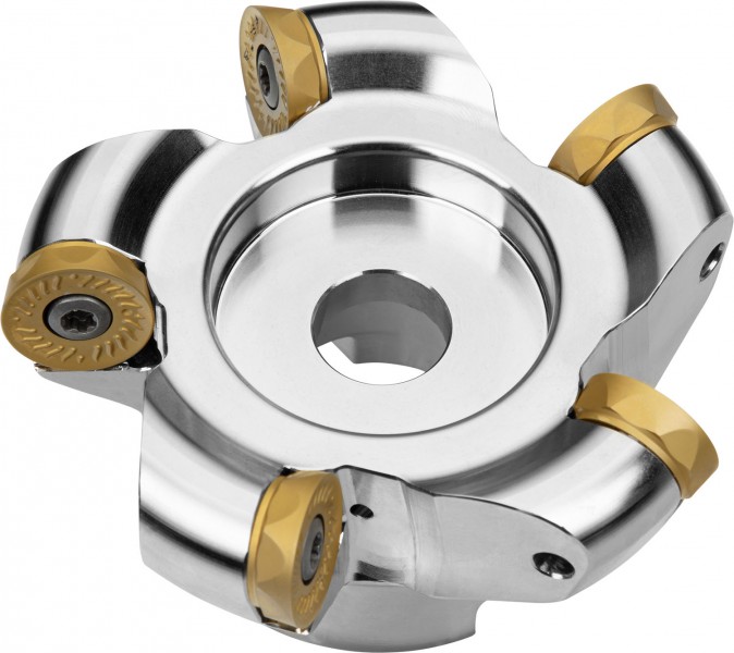 Nástrčná fréza s vyměnitelnými břitovými destičkami 100A05R-SMORC20-C s upínáním šroubkem pro kopírování. Řezný průměr 100 mm, směr řezu pravý. Pracovní počet ostří 5. Do frézy se upínají destičky kruhového tvaru s úhlem hřbetu 7°. Destičky se do fré