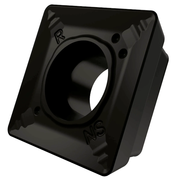 SDMT 1205, jednostranné čtvercové frézovací destičky pro ocel a litiny, maximální hloubka řezu 10,0 mm, rádius 0,8 mm, dvojitá fazetka, MT-CVD povlak.