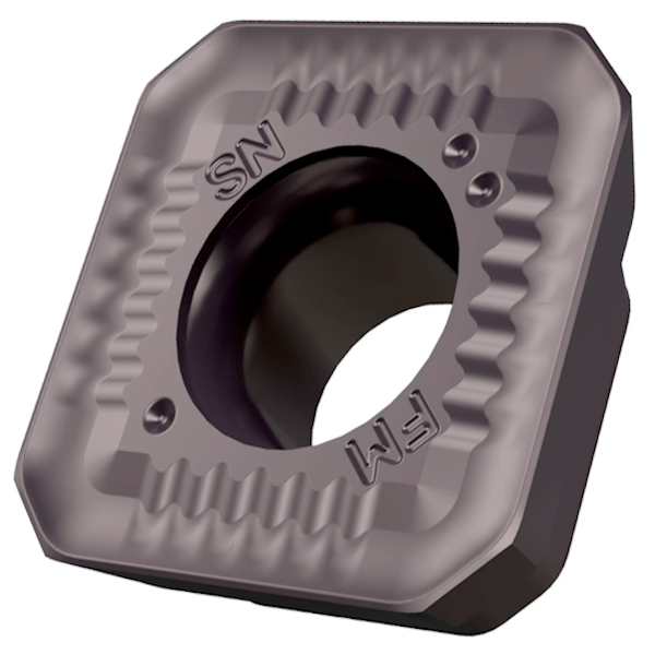SDMT 1205, jednostranné čtvercové frézovací destičky pro ocel, maximální hloubka řezu 10,0 mm, rádius 0,8 mm, fazetka, PVD povlak.