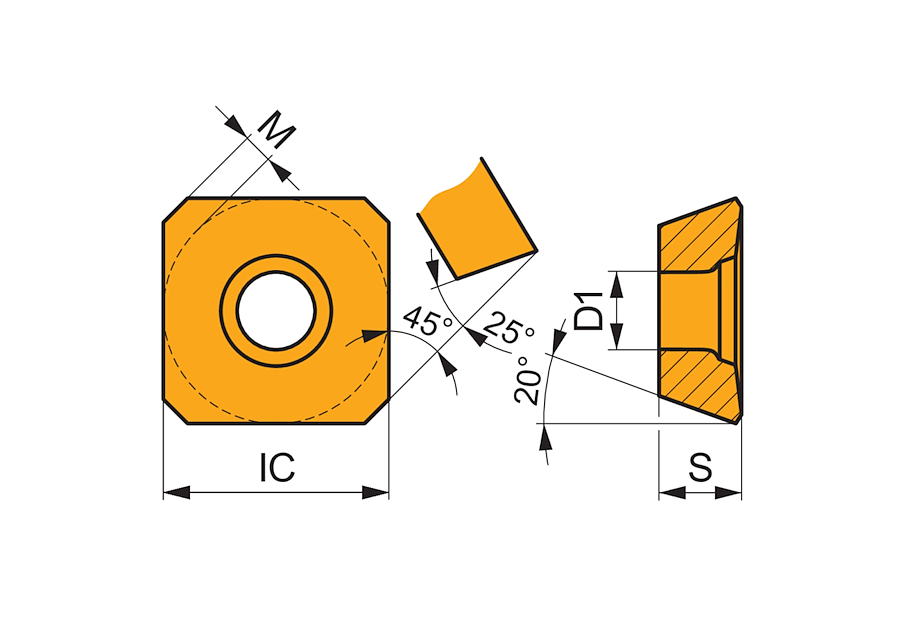 Jednostranné frézovací destičky SEMT 09T3AFSN:M9325 jsou optimalizovány pro rovinné frézy SSE09, poskytující vysokou stabilitu a přesnost při obrábění. Čtvercový tvar destiček zajišťuje bezpečné upnutí a efektivní odvod třísek při maximální hloubce řezu 4,5 mm, což umožňuje plynulé a kvalitní obrábění ocelí i litin.