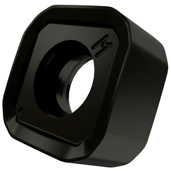Rádius 1,6 mm poskytuje vysokou robustnost břitu a přispívá k bezpečnému chodu nástroje i při agresivních parametrech, které jsou typické pro vysoké posuvy. M geometrie se zaoblenou řeznou hranou a optimalizovanou fazetkou zvyšuje procesní stabilitu, snižuje řezné síly a podporuje plynulé a kontrolované obrábění, což vede k výrazně snížení opotřebení.