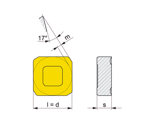 Destičky mají R geometrii s fazetkou a zaoblenou řeznou hranou, která podporuje hladký odvod třísek a snižuje opotřebení břitu. Díky tomu je zvýšena životnost destiček a umožněno spolehlivé obrábění i při vyšších posuvech a hloubkách řezu.