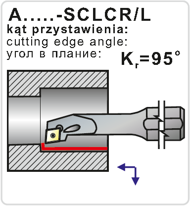 Soustružnický držák pro vnitřní soustružení . Průměr držáku je 12 mm, celková délka 125 mm. Hlava držáku má tvar L a úhel nastavení 95°. Do držáku se upínají destičky kosočtvercového tvaru s úhlem 80° s délkou řezné hrany 6,35 mm. Úhel hřbetu destičk