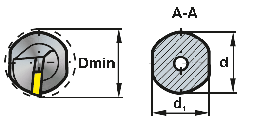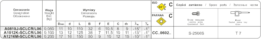 Soustružnický držák pro vnitřní soustružení . Průměr držáku je 16 mm, celková délka 150 mm. Hlava držáku má tvar L a úhel nastavení 95°. Do držáku se upínají destičky kosočtvercového tvaru s úhlem 80° s délkou řezné hrany 6,35 mm. Úhel hřbetu destičk