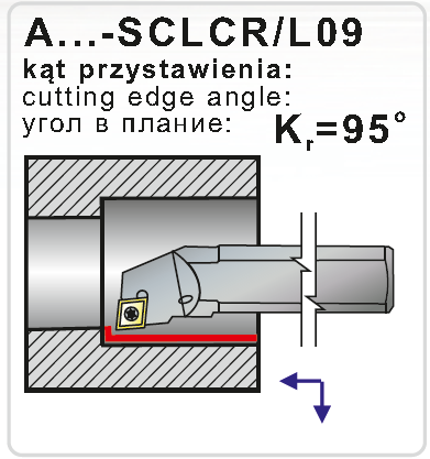 Soustružnický držák pro vnitřní soustružení . Průměr držáku je 12 mm, celková délka 150 mm. Hlava držáku má tvar L a úhel nastavení 95°. Do držáku se upínají destičky kosočtvercového tvaru s úhlem 80° s délkou řezné hrany 9,525 mm. Úhel hřbetu destič