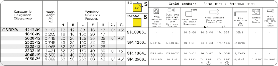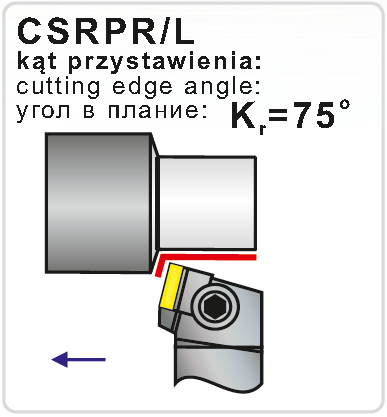 Soustružnický držák pro vnější soustružení. Výška držáku je 32 mm, šířka 32 mm. Hlava držáku má tvar R a úhel nastavení 75°. Destičky se do držáku upínají způsobem C, tedy upínkou na plochu. Do držáku se upínají destičky čtvercového tvaru velikosti 1