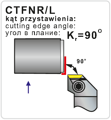 Soustružnický držák pro vnější soustružení. Výška držáku je 32 mm, šířka 25 mm. Hlava držáku má tvar F a úhel nastavení 90°. Destičky se do držáku upínají způsobem C, tedy upínkou na plochu. Do držáku se upínají destičky trojúhelníkového tvaru veliko
