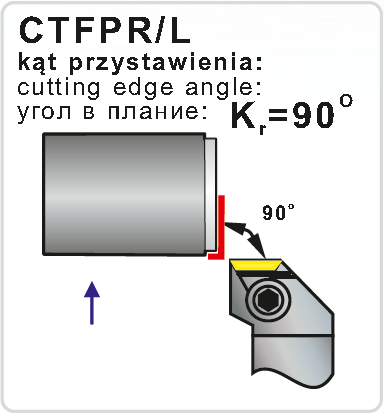 Soustružnický držák pro vnější soustružení. Výška držáku je 25 mm, šířka 25 mm. Hlava držáku má tvar F a úhel nastavení 90°. Destičky se do držáku upínají způsobem C, tedy upínkou na plochu. Do držáku se upínají destičky trojúhelníkového tvaru veliko