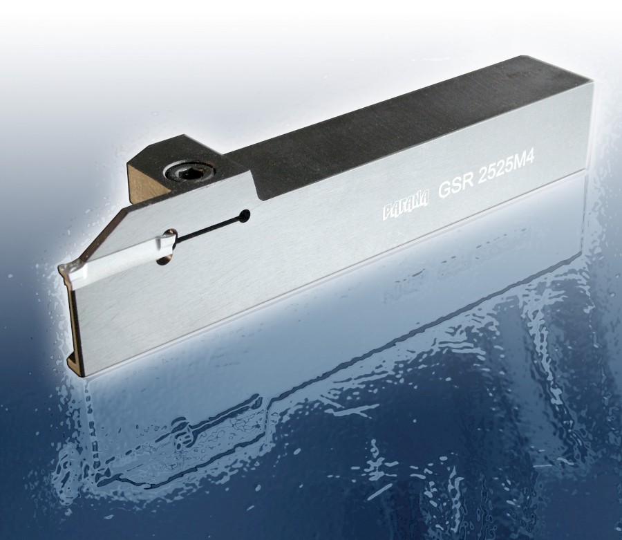 Soustružnický držák pravý pro drážkování a podélné vnější soustružení - zesílený pro těžký provoz. Délka držáku 150 mm, výška 25 mm, šířka 25 mm. Do držáku se upínají destičky typu PTN, PTL nebo PTR.
