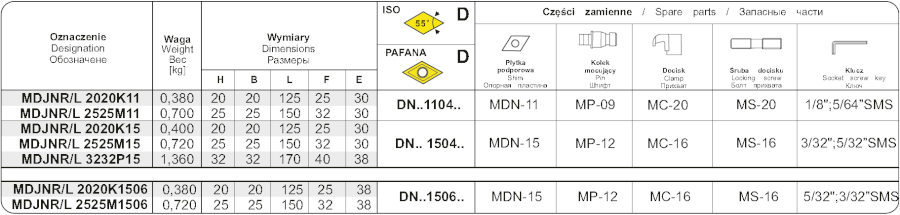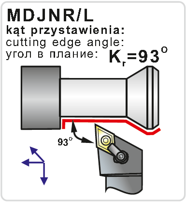 Soustružnický držák pro vnější soustružení. Výška držáku je 20 mm, šířka 20 mm, celková délka držáku 125 mm. Hlava držáku má tvar J a úhel nastavení 93°. Destičky se do držáku upínají způsobem M, tedy klínovou upínkou. Do držáku se upínají destičky k
