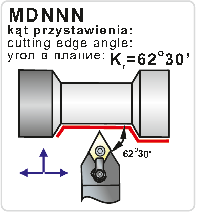 Soustružnický držák pro vnější soustružení. Výška držáku je 20 mm, šířka 20 mm, celková délka držáku 125 mm. Hlava držáku má tvar N a úhel nastavení 63°. Destičky se do držáku upínají způsobem M, tedy klínovou upínkou. Do držáku se upínají destičky k